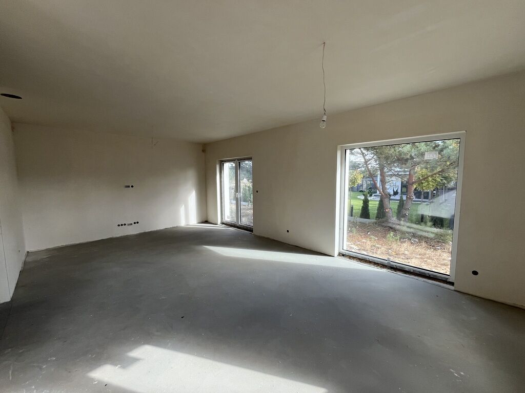 Przestronny salon z wyjściem na ogród, połączony z kuchnią i